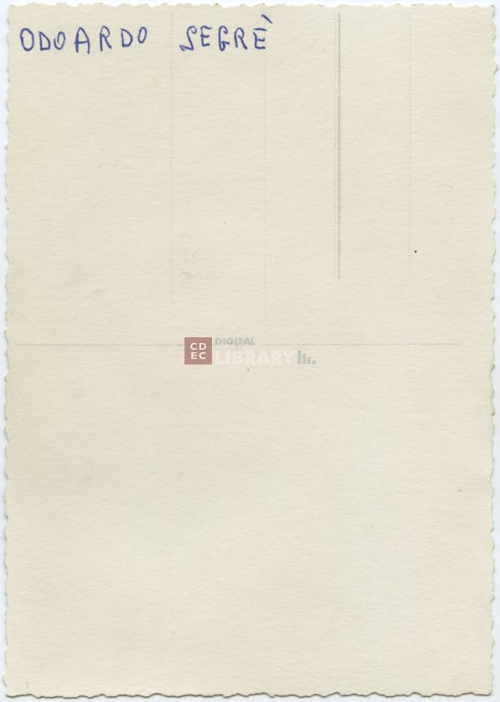notizie storico-critiche | La fotografia venne consegnata in una busta degli avvocati Nino Segrè, Ennio Segrè e Tullio Segrè, indirizzata alla "Gentile Signorina Dott. Eloisa Ravenna. Nel fascicolo d'archivio è presente una ristampa su cartoncino della fotografia. |