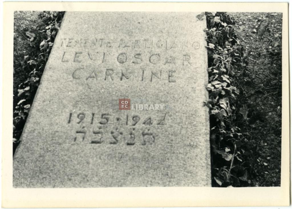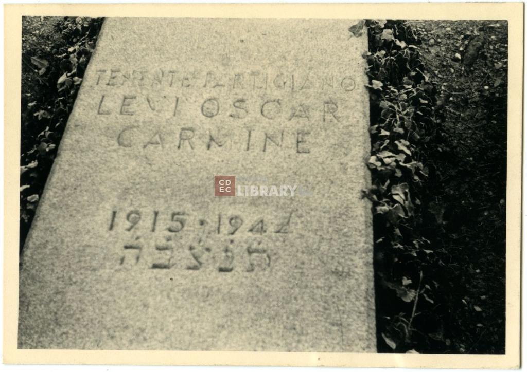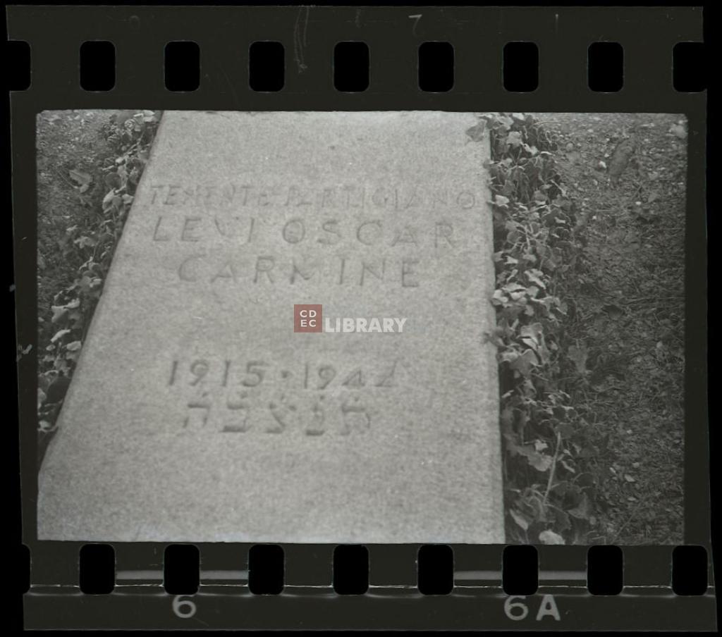 titolo attribuito | Veduta della lapide tombale del Tenente partigiano Oscar Carmine Levi nel nuovo Cimitero israelitico di Torino |