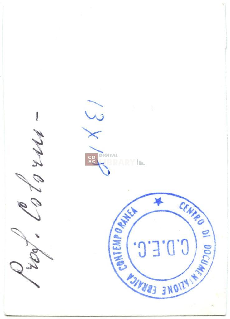 timbri, marchi | sul verso del supporto il timbro circolare con la scritta lungo il bordo "Centro di Documentazione Ebraica Contemporanea" e al centro "Sezione Italiana" |