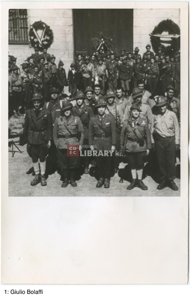 notizie storico-critiche | La fotografia fu donata alla Fondazione CDEC dall'Ufficio Stralcio della IV Divisione Alpina Giustizia e Libertà "Stellina". Come indicato nell'analogo scatto (inv. 141-s037-006), ritrae i partigiani della Divisione G.L. "Stellina" riuniti in occasione della Commemorazione dei caduti al Poligono del Martinetto a Torino nel maggio 1945 |