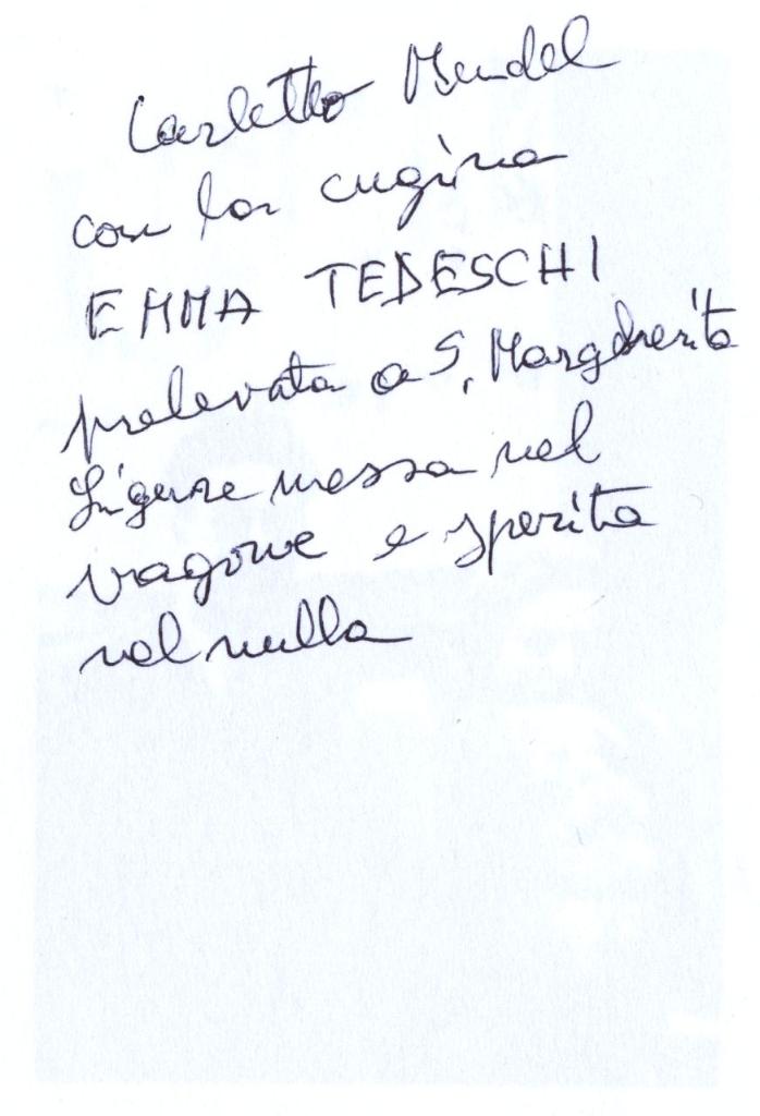 | notizie storico-critiche | Emma Tedeschi in Girotto era figlia di Dora Mendel, zia paterna di Carlo Leone Mendel. Fu arrestata nel novembre 1943 e deportata nell'agosto 1944 |