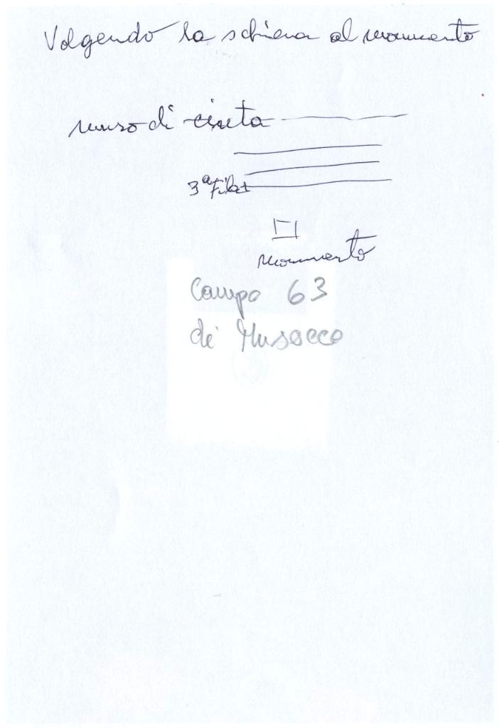 | iscrizioni | nell'immagine sulla lapide la scritta "Partigiano Carlo Mendel 19-12-1943" - sul verso del supporto l'indicazione manoscritta in alto "volgendo la schiena al monumento muro di cinta/ 3a fila monumento" e al centro "campo 63 di Musocco" |