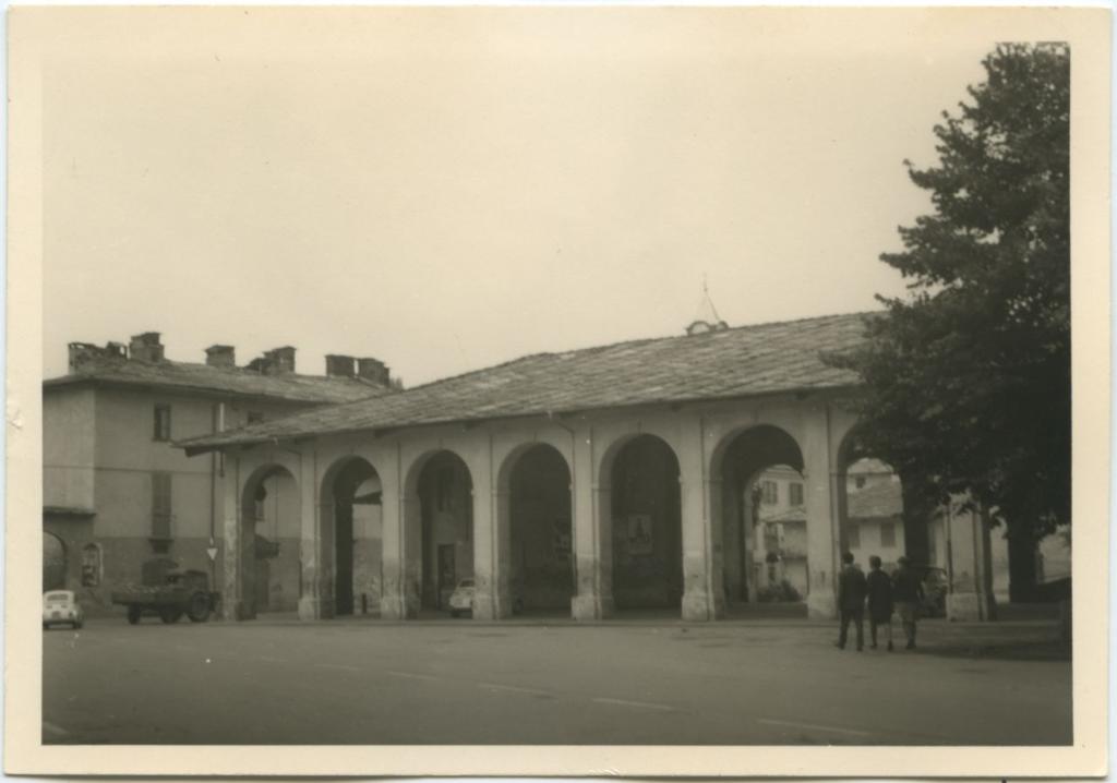 | notizie storico-critiche | Conservata in una busta di carta insieme ad altre 11 fotografie che mostrano "luoghi teatro di alcune battaglie partigiane". La costruzione รจ ubicata in Piazza IV Novembre a Cavour (Torino), tra le vie Conte di Cavour, Borgi e Giolitti. |