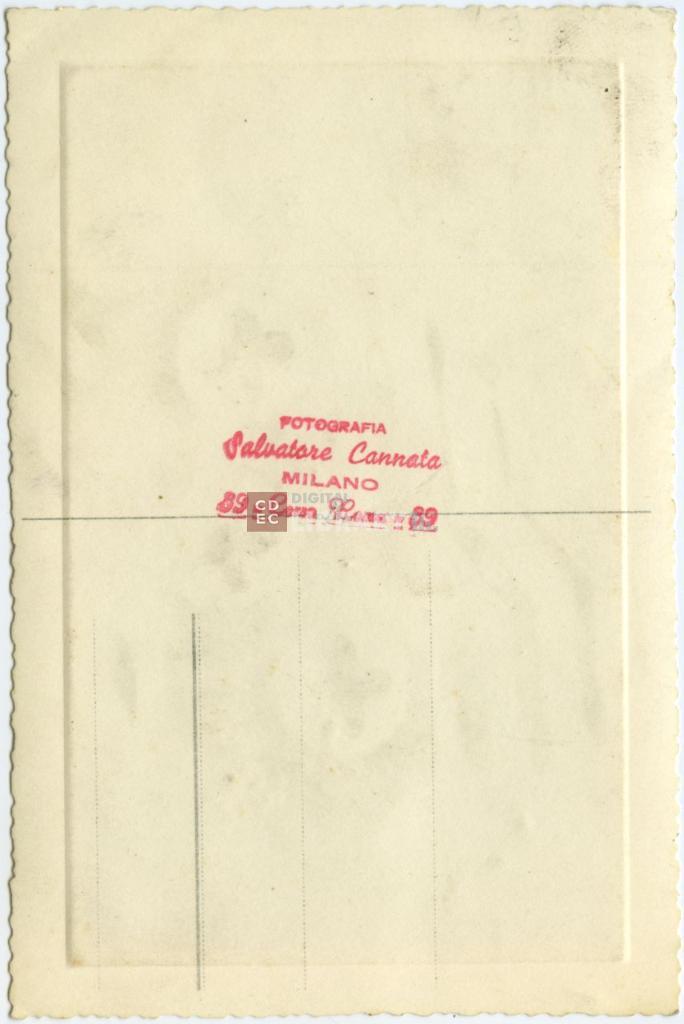 | timbri, marchi | sul verso del supporto il timbro a inchiostro rosso con il marchio commerciale del fotografo |