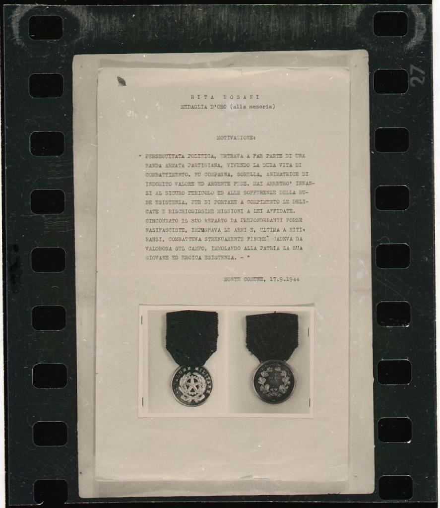 | titolo attribuito | Veduta fronte e retro della Medaglia d'Oro al Valor Militare di Rita Rosani |