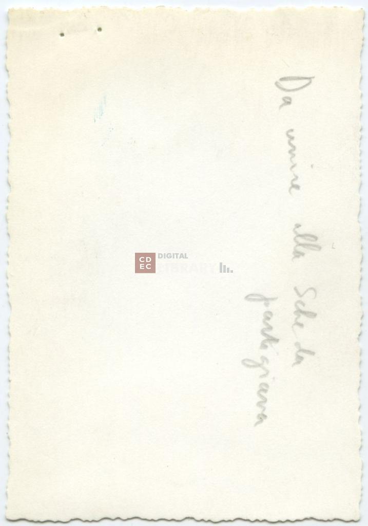 iscrizioni | nell'immagine la firma "Mario Servadio" - sul verso del supporto l'indicazione manoscritta "Da unire alla scheda partigiana" |