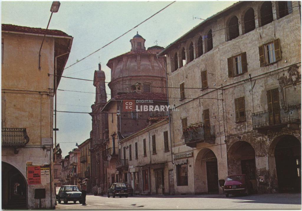 titolo attribuito | Veduta della via Valobra e scorcio della Chiesa di S. Rocco a Carmagnola |