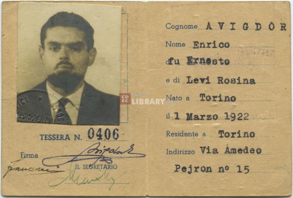 notizie storico-critiche | La Tessera N. 0406 dell'Associazione Nazionale ex Detenuti Politici fu rilasciata all'Antifascista Enrico Avigdor dalla Sezione di Torino il 25 aprile 1945 |