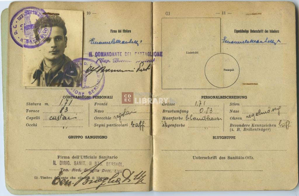 titolo attribuito | Fototessera su Libretto personale dell'Esercito della Repubblica Sociale Italiana di Emanuele Marchetti |