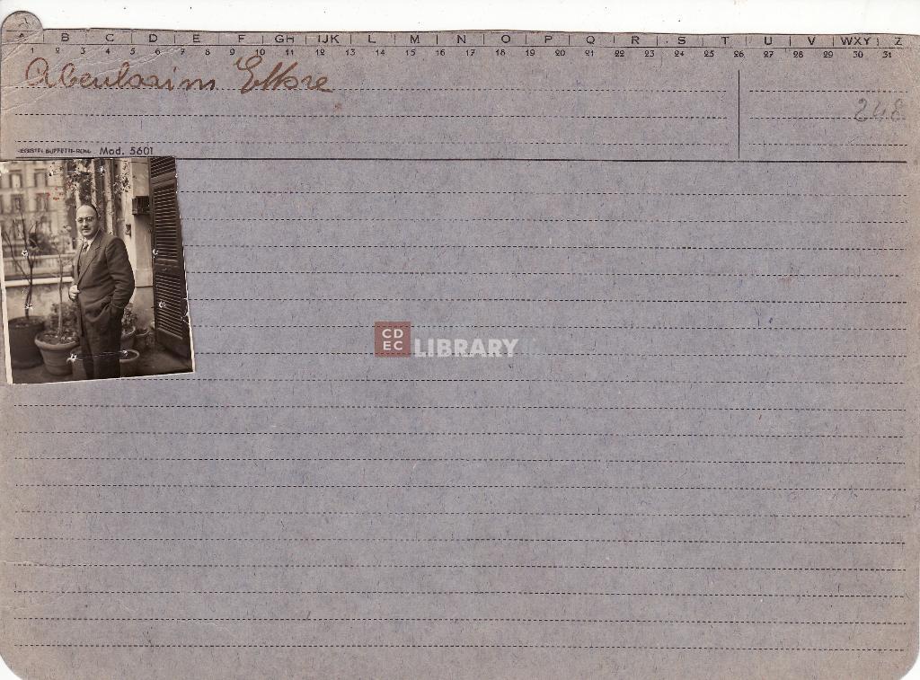 Ettore Abenaim, figlio di Umberto Abenaim e Linda Cassuto è nato in Italia a Pisa il 5 agosto 1909. Arrestato a Torino (Torino). Deportato nel campo di sterminio di Auschwitz. Non è sopravvissuto alla Shoah. luogo di arresto: Torino data di arresto: 15/12/1943 luogo di detenzione: TORINO carcere luogo di raccolta: MILANO carcere destino: Morto/a in campo di sterminio numero di convoglio: convoglio n. 06, 30/01/1944 data di partenza del convoglio: 30/01/1944 data di arrivo del convoglio: 06/02/1944 campo di destinazione: Auschwitz numero di matricola: 173398 |