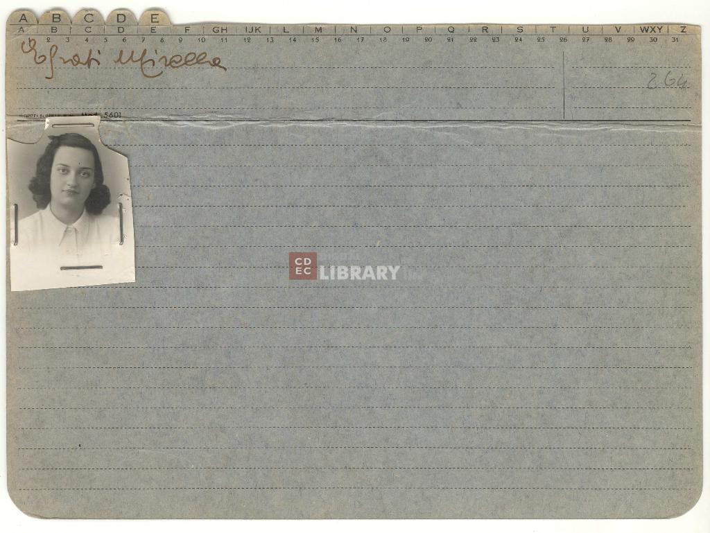 data di nascita: 14/09/1923 luogo di nascita: Roma data di morte: 23/10/1943 figlio/figlia di: Efrati, Settimio - Fiorentino, Alda |