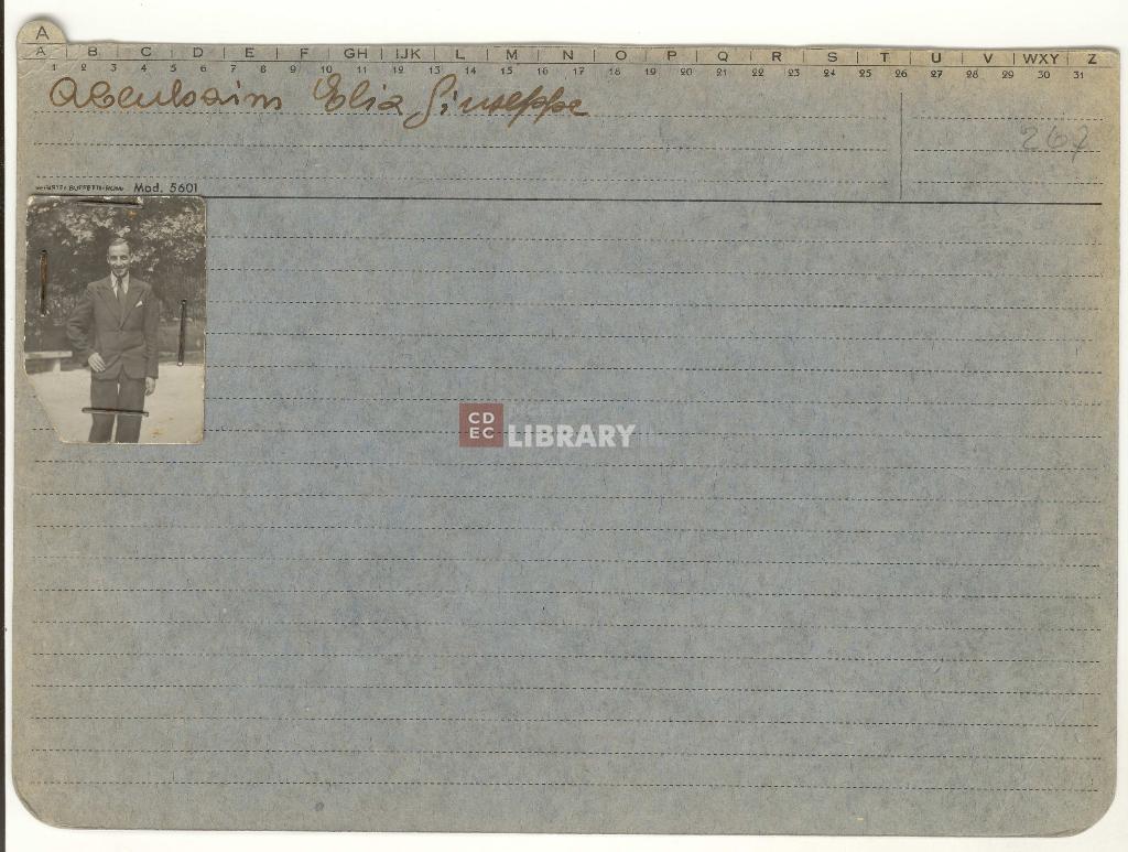 Elia Giuseppe Abenaim, figlio di Dario Abenaim e Rosa Eminente è nato in Italia a Livorno il 21 ottobre 1912. Coniugato con Maria Ferrarini. Arrestato a Genova (Genova). Deportato nel campo di sterminio di Auschwitz. Non è sopravvissuto alla Shoah. luogo di arresto: Genova data di arresto: 02/08/1944 luogo di detenzione: GENOVA carcere luogo di raccolta: BOLZANO campo destino: Morto/a in campo di sterminio numero di convoglio: convoglio n. 18, 24/10/1944 data di partenza del convoglio: 24/10/1944 data di arrivo del convoglio: 28/10/1944 campo di destinazione: Auschwitz numero di matricola: 199858 |