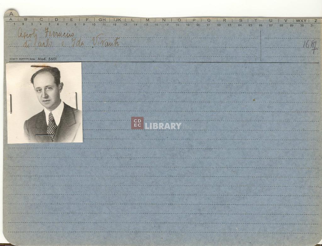 Ferruccio Ascoli, figlio di Carlo Ascoli e Ida Vivanti è nato in Italia a Ancona l' 11 agosto 1897. Arrestato a Serrapetrona (Macerata). Deportato nel campo di sterminio di Auschwitz. Non è sopravvissuto alla Shoah. luogo di arresto: Serrapetrona data di arresto: 27/04/1944 luogo di detenzione: MACERATA carcere luogo di raccolta: FOSSOLI campo destino: Morto/a in campo di sterminio numero di convoglio: convoglio n. 13, 26/06/1944 data di partenza del convoglio: 26/06/1944 data di arrivo del convoglio: 30/06/1944 campo di destinazione: Auschwitz numero di matricola: ? |