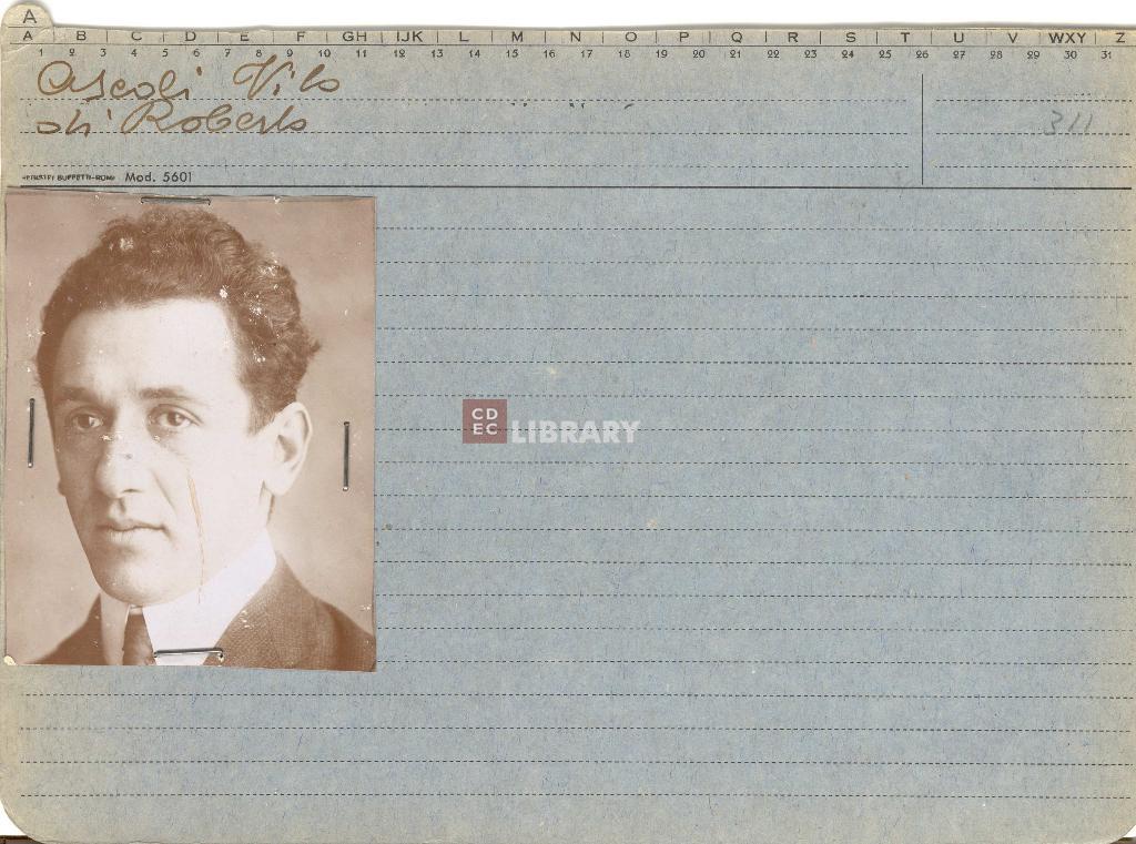 Vito Ascoli, figlio di Roberto Ascoli e Ida Trevi è nato in Italia a Roma il 12 aprile 1895. Coniugato con Adriana Terracina. Arrestato a Roma (Roma). Deportato nel campo di sterminio di Auschwitz. Non è sopravvissuto alla Shoah.