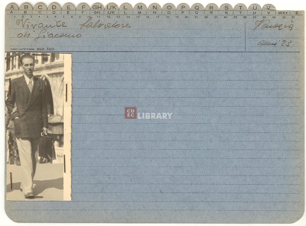 Salvatore Vivante, figlio di Jacob Vita Vivante e Marcella Arbib è nato in Italia a Venezia il 17 giugno 1921. Arrestato a Sondalo (Sondrio). Deportato nel campo di sterminio di Auschwitz. Non è sopravvissuto alla Shoah. luogo di arresto: Sondalo data di arresto: 17/01/1944 luogo di detenzione: SONDRIO carcere luogo di raccolta: MILANO carcere destino: Morto/a in campo di sterminio numero di convoglio: convoglio n. 06, 30/01/1944 data di partenza del convoglio: 30/01/1944 data di arrivo del convoglio: 06/02/1944 campo di destinazione: Auschwitz numero di matricola: 173485 |